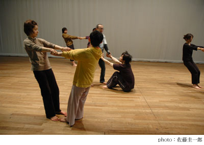 坂本:でも僕がこだわっているのは、動きの中で導かれる特殊な感覚。例えば目をつぶってもコンタクトっていうのは可能なわけです。そういう意味では明らかに視覚・聴覚から切り離されたところで成立するものだと思う。それは触った時に、触ったところだけ感じるんじゃなくて、延長されるわけだよね。自分の身体が相手の身体の方に。で、相手も僕の身体の方に入ってくるし。お互いのセンサーが鋭敏だったら、単に触れるだけでそういう知覚が可能で、それを使って踊るっていうことでしょ。で、そこにあるものって何なんやろうって。運動感覚ともまたちょっと違うし。身体を像にする力みたいなもの…。言葉を捜さなければならないとは思うのだけど。