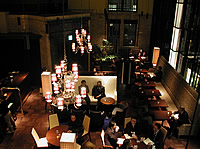 ここは、昭和13年(1938)ごろ竣工の建物で、もともと英国系の銀行であるチャータード銀行のビルとして建設されました。その後パナマ領事館がテナントとして利用していた時期もあるようですが、昭和55年に現在のオーナーであるデビス商会が土地・建物を買い取り、ずっと倉庫として利用していました。この建物をテナントリーシングを職業としている友達と発見し、デビス商会を前職場の竹中工務店が顧客としていたため交渉を行い、交渉自体はかなり難航しましたがなんとかデビス氏にもご理解いただき、今話題のレストラン「EHバンク」が誕生したという次第です。僕はこの仕事はプロデュースではなく(内装デザインのINFIX間宮氏はレストランのプロデューサーである宮垣氏が起用)、オーナーさんを説得しプロジェクトを無事最後まで導くコーディネーターとして動きました。 |