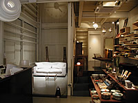 「ほっこりするような美容室つくりましょうよ」って提案して、デザイナーはコンペでgrafの服部くんが選ばれて、ロゴはハニーフラッシュっていう若いグループの池口君というデザイナーを起用して。(ハニーフラッシュのメンバーはそれぞれ仕事を持っていて、イベントやったりおもしろいグループですよ。)カードやTシャツを作ったり、オープニングイベントとして、最近、若者の間で人気の演劇集団ゴーマグさんの公演をヘアーショーと兼ね合わせて企画して。2日間で300人ほど来ました。服部君がすごいのは予算が限られていたという理由もあるんですけど、無駄な装飾をせず元々あったいいものをそのまま使うんですね。ある空間をそのまま生かす。中庭を作ったりサロンもあって、終わった後にお茶を飲めるんですけど、居心地がよすぎてお客さんがなかなか帰らないらしいんです。(笑)。他ではやってないことをしたので雑誌にもよく取り上げられてます。 |